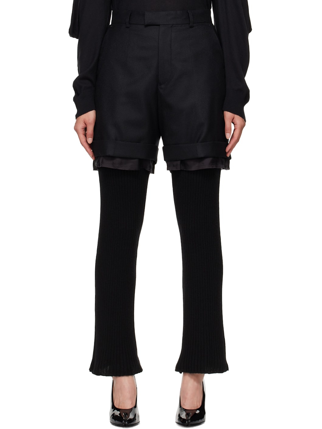 Straight-leg rib knit stretch wool trousers. Rayon- and wool-blend twill short-style overlay. · Layered construction · Belt loops · Four-pocket styling · Zip-fly Supplier color: Black Body 1: 98% wool, 2% polyurethane. Body 2: 33% rayon, 23% nylon, 20% wool, 20% cotton, 4% cashmere. Lining: 100% cupro. Made in Japan 242414F087001