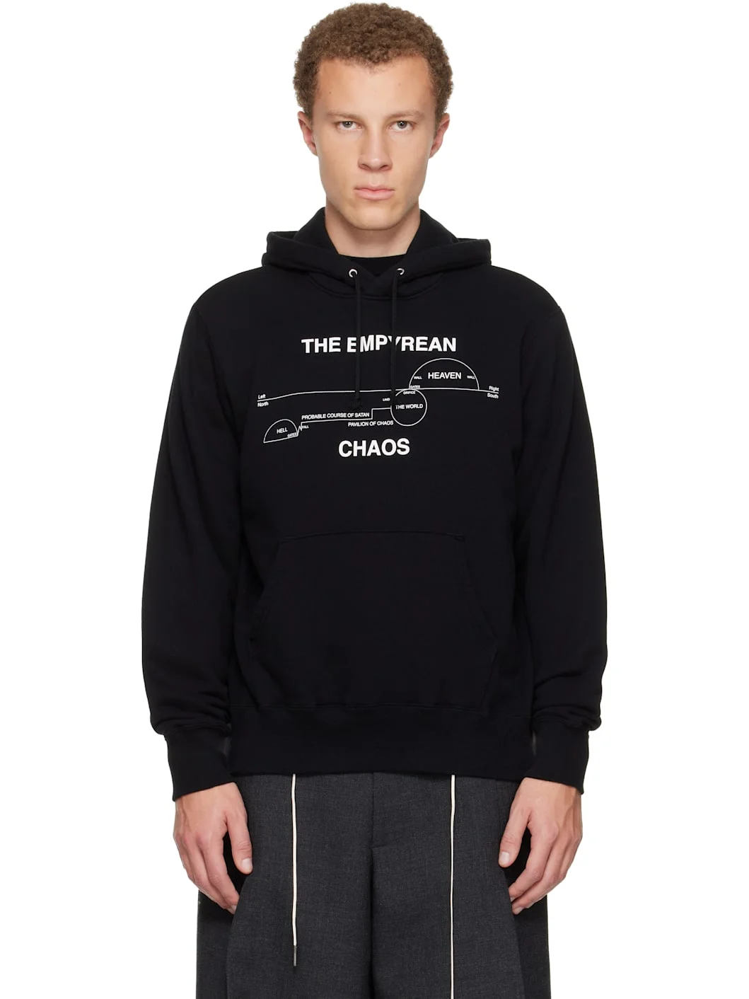 French terry hoodie. · Drawstring at hood · Graphic and text printed at front · Kangaroo pocket at waist · Rib-knit hem and cuffs Supplier color: Black 100% cotton. Made in Japan 252414M202000