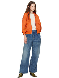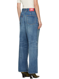 Non-stretch denim jeans. Fading and whiskering throughout. · Belt loops · Four-pocket styling · Zip-fly · Tuck pleats at front · Creased legs · Leather logo patch at back waistband · Logo flag at back pocket Supplier color: Light blue indigo 100% cotton. Made in Japan 251414F069000