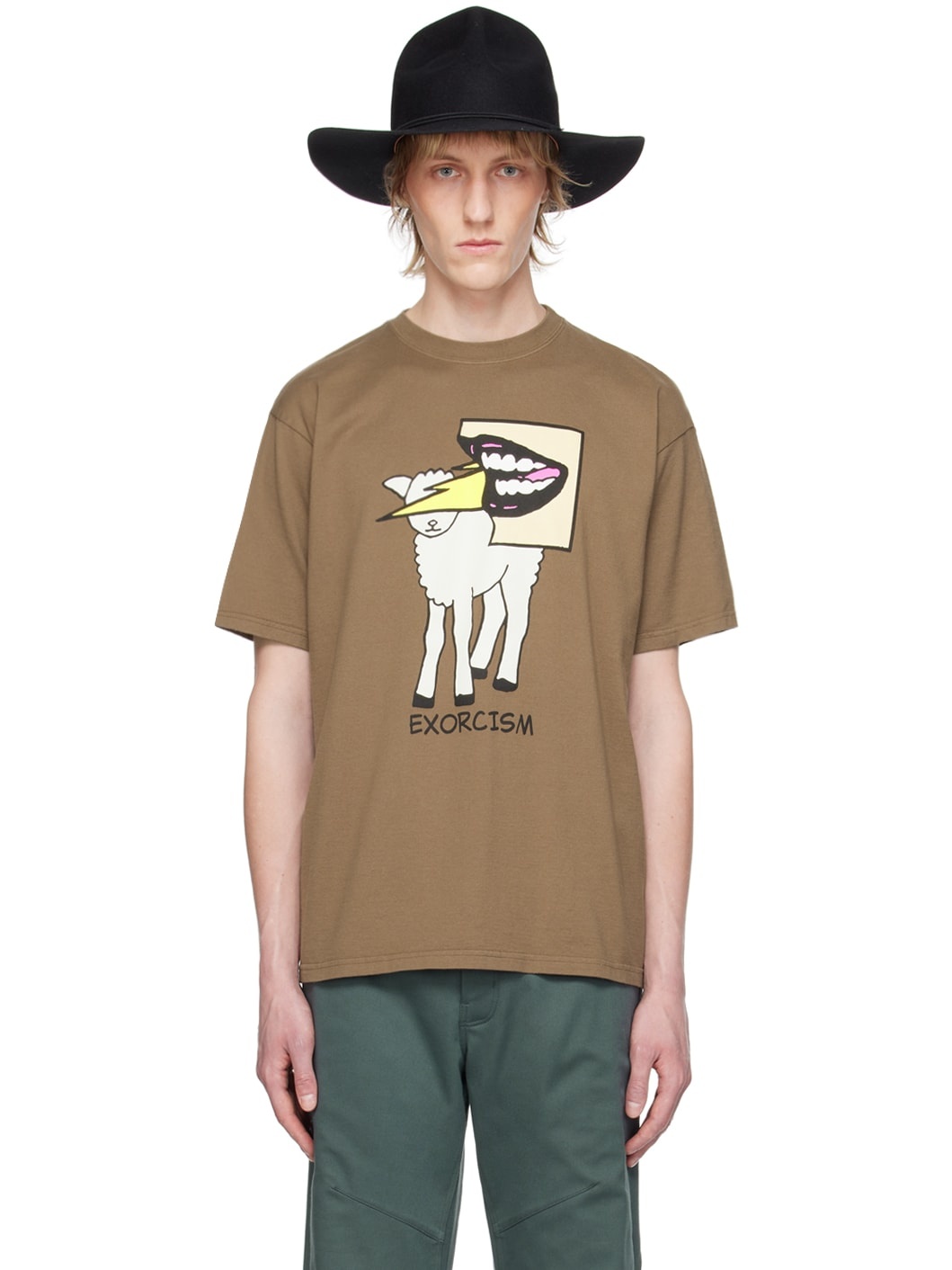 Cotton jersey T-shirt. · Rib knit crewneck · Graphic and text printed at front · Dropped shoulders Supplier color: Gray beige 100% cotton. Made in Japan 242414M213005