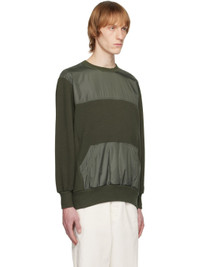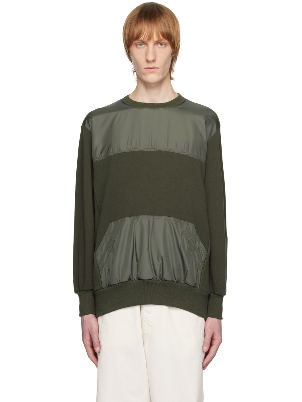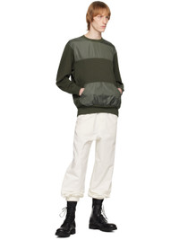 Paneled French terry and polyester taffeta sweatshirt. · Rib knit crewneck, hem and cuffs · Kangaroo pocket · Rib knit panel at side seams · Zip pocket at sleeve Supplier color: Khaki green