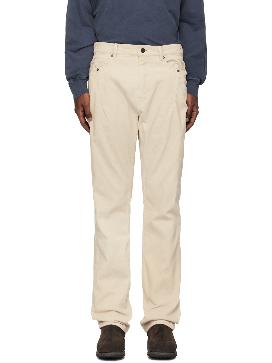 Cotton corduroy trousers. · Belt loops · Five-pocket styling · Zip fly · Pintuck at front and back pockets · Logo patch at back waistband · Logo flag at back pocket · Antiqued brass-tone hardware Supplier color: Ivory 100% cotton. Made in Japan 242414M186002