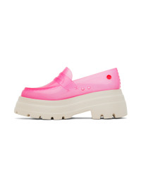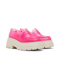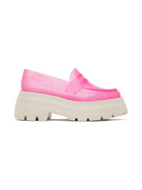 Transparent PVC loafers in pink. · Moc toe · Rubberized logo patch at inner side · Eyelets at inner side · Padded faux-leather footbed · EVA platform foam rubber midsole · Treaded rubber sole · Platform: H2.25" Part of the Undercover x Melissa collaboration. Supplier color: Pink Upper: polyvinyl chloride. Sole: rubber. Made in Brazil 242414F121001