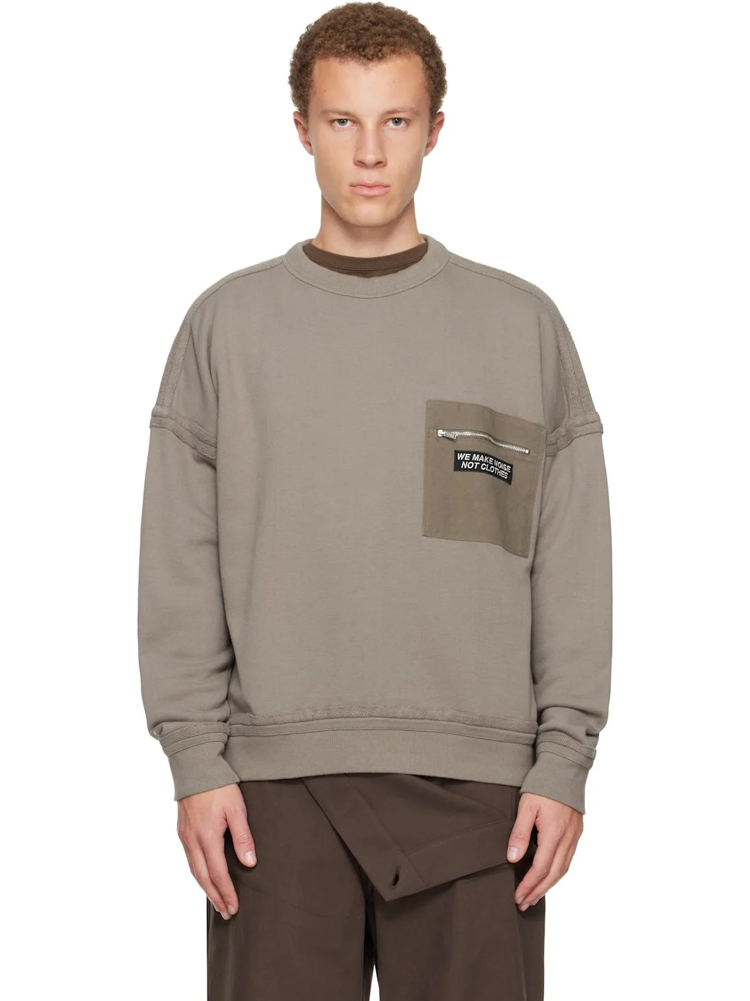 French terry sweatshirt. · Exposed seams throughout · Rib-knit crewneck, hem and cuffs · Graphic and text patch at chest · Zip pocket at chest Supplier color: Gray Beige 100% cotton. Made in Japan 252414M204008
