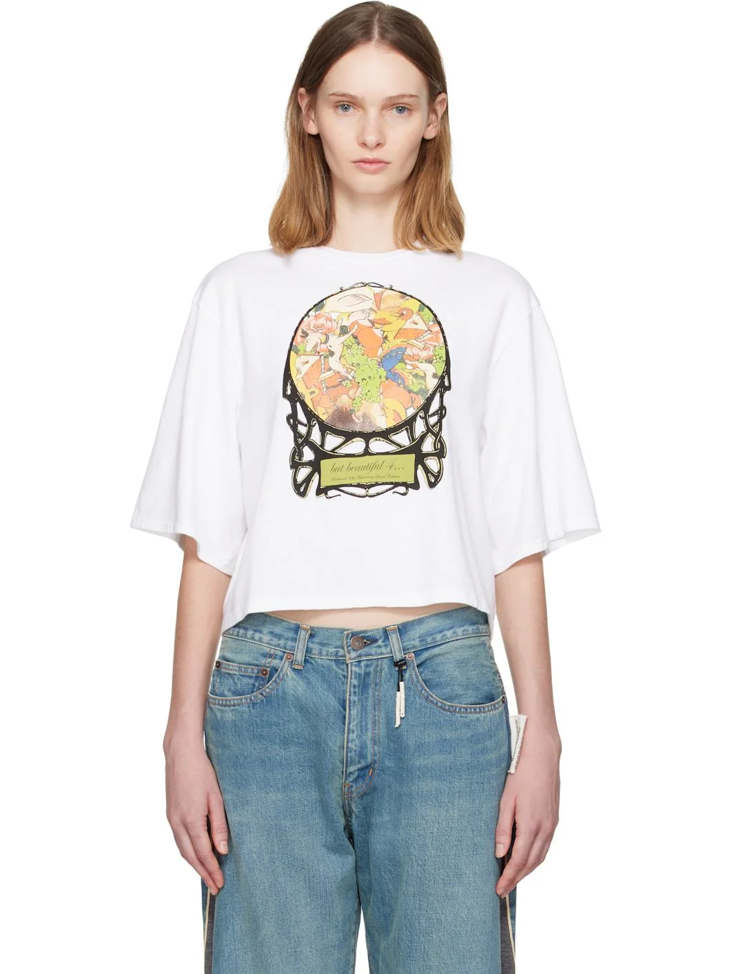 Cotton jersey T-shirt. · Rib-knit crewneck · Graphic printed at front Supplier color: White 100% cotton. Made in Japan 252414F110006