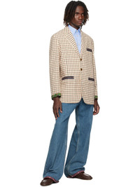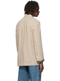 Beige Check Pattern Single-Breasted Cotton Blazer