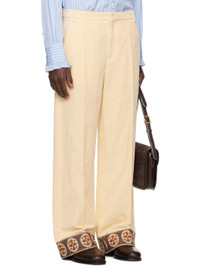 Flocked woven cotton-blend trousers. · Belt loops · Four-pocket styling · Zip fly · Creased legs · Jacquard patterned trim at cuffs · Full satin twill lining Supplier color: Burro Body: 59% cotton, 41% flax. Trim: 73% polyester, 27% cotton. Lining: 100% cotton. Pocket lining: 100% cotton. Made in Italy 252476M191000