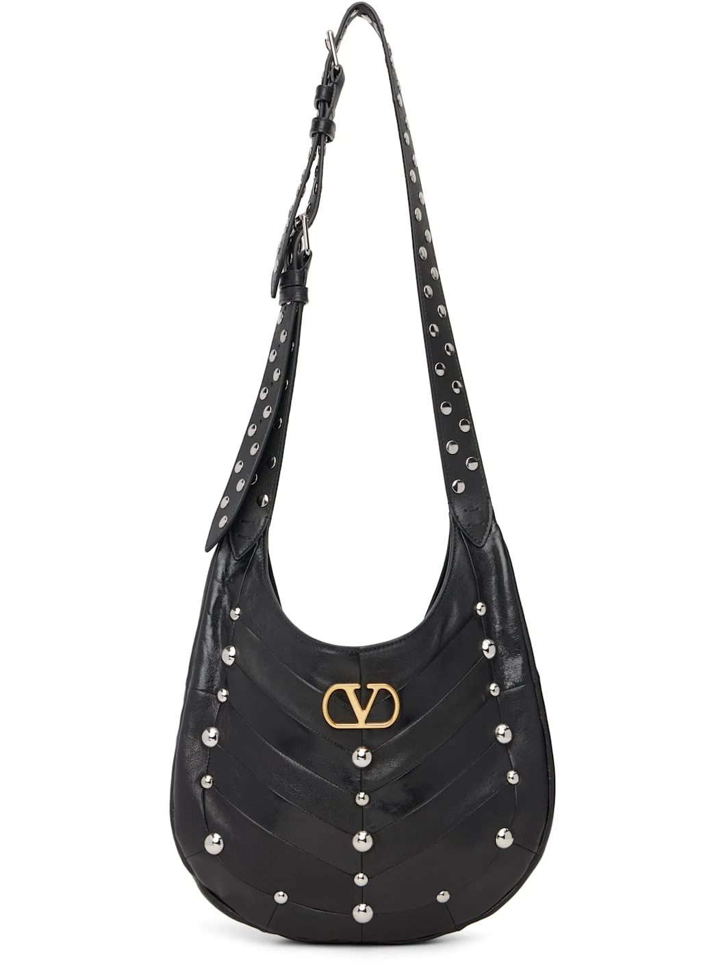 VALENTINO GARAVANI HOBOHO SMALL NAPPA LEATHER HOBO BAG WITH CHEVRON PATTERN AND STUDS