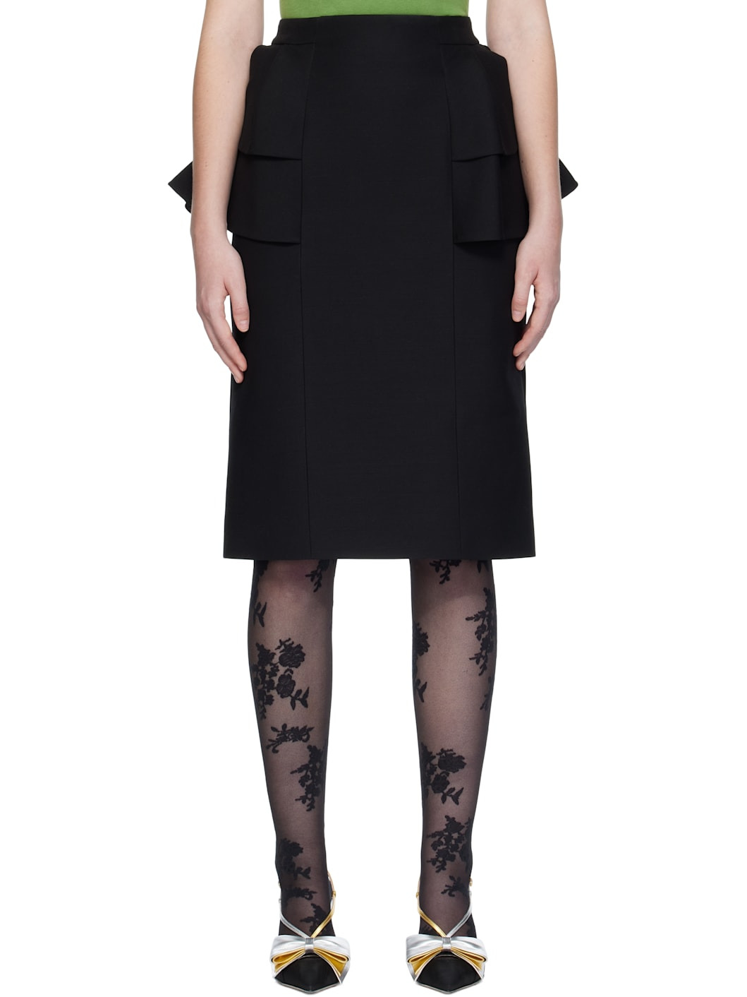 Virgin wool- and silk-blend crepe midi skirt. · Ruffles at sides · Concealed zip closure at back · Central vent at back hem · Full satin lining Supplier color: Black Body: 65% virgin wool, 35% silk. Lining: 100% silk. Made in Italy 252476F092001