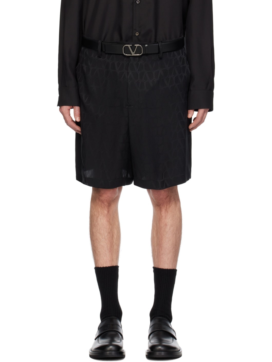 Silk damask shorts. Jacquard logo pattern throughout. · Belt loops · Four-pocket styling · Zip-fly · Creased legs Supplier color: Nero 100% silk. Made in Italy 241476M193000