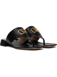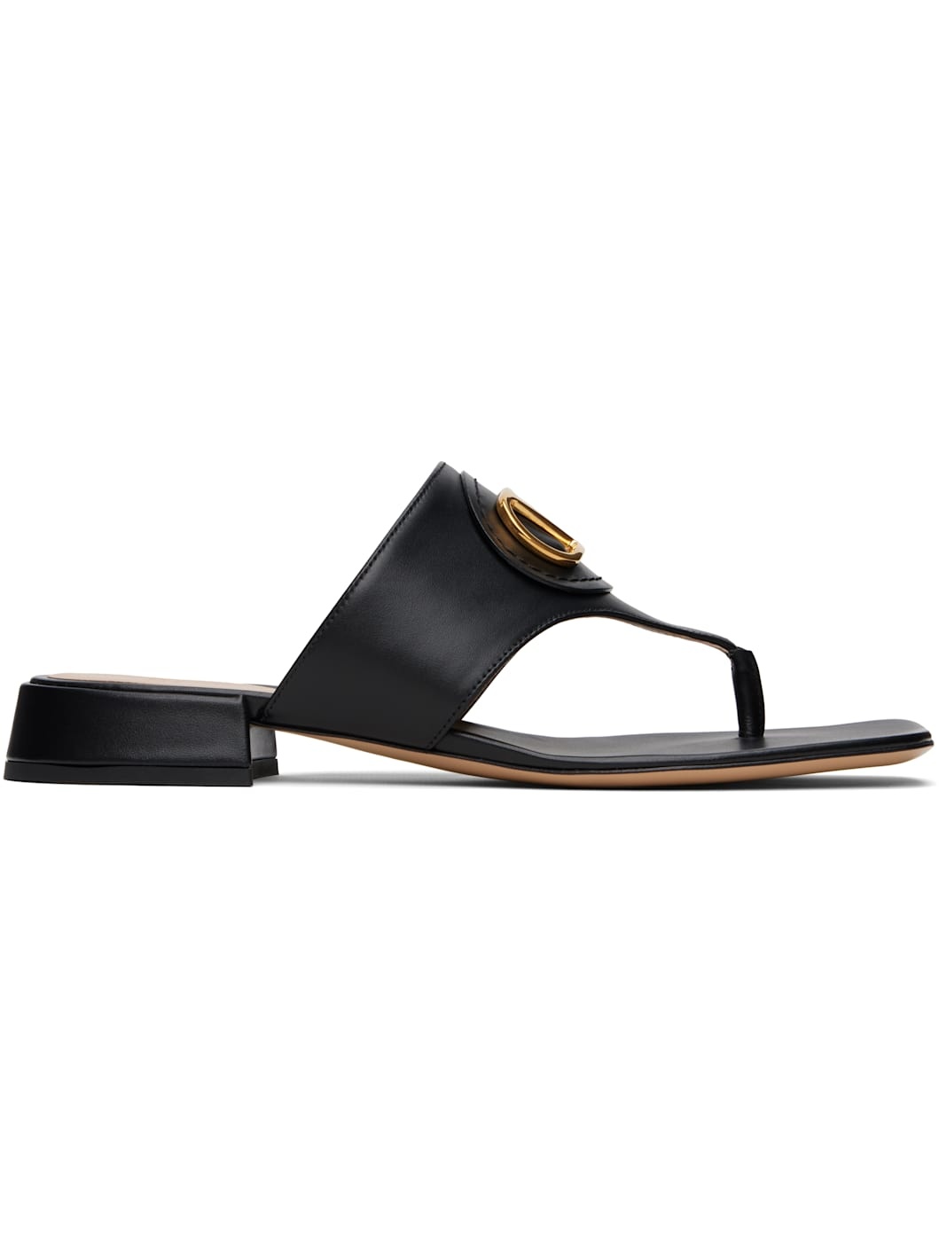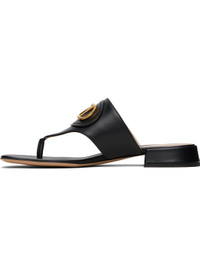 Buffed leather flat sandals in black. · Open square toe · Thong-style strap and logo hardware at vamp · Logo stamp at padded footbed · Covered block heel with rubber injection · Leather sole Supplier color: Nero Upper: leather. Sole: leather, rubber. Made in Italy 251807F124030