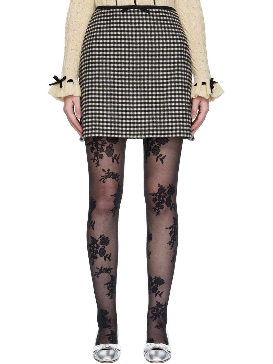 Virgin wool- and cashmere-blend flannel miniskirt. · Check pattern throughout · Grosgrain trim at waistband · Zip closure at side · Darts at back Supplier color: Avoiro/Nero Body: 97% virgin wool, 3% cashmere. Trim: 56% cotton, 44% viscose. Made in Italy 252476F090001