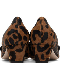 Hair-on calfskin heels. · Leopard pattern printed throughout · Square toe · Suede bow accent at vamp · Buffed leather lining · Covered block heel with rubber injection · Polished leather sole · Heel: H2" Supplier color: Animal print Upper: calfskin. Sole: leather. Made in Italy 252807F122024