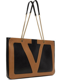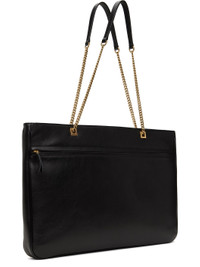 Grained nappa leather tote in brown and black. · Sliding curb chain carry handles · Logo applique at face · Zip pocket at back face · Zip closure · H12" x W17.5" x D1.5" Supplier color: Black/Brown Leather. Made in Italy 251807F049006