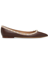 Buffed leather ballerina flats. · Pointed toe · Pyramid studs at collar · Buffed leather lining · Stacked leather heel with rubber injection · Leather sole Supplier color: Light coffee Leather. Made in Italy 252807F118007