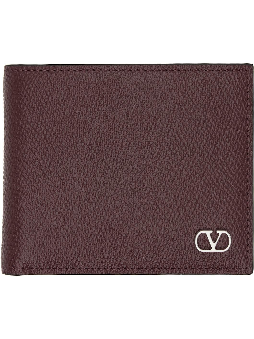 Pebble-grained calfskin bifold wallet. · Logo hardware at face · Eight card slots at interior · Two patch pockets and one note slot · Canvas lining · Silver-tone hardware · H3.5" x W4.25" x D1" Supplier color: Rosewood Calfskin. Made in Italy 252807M164002