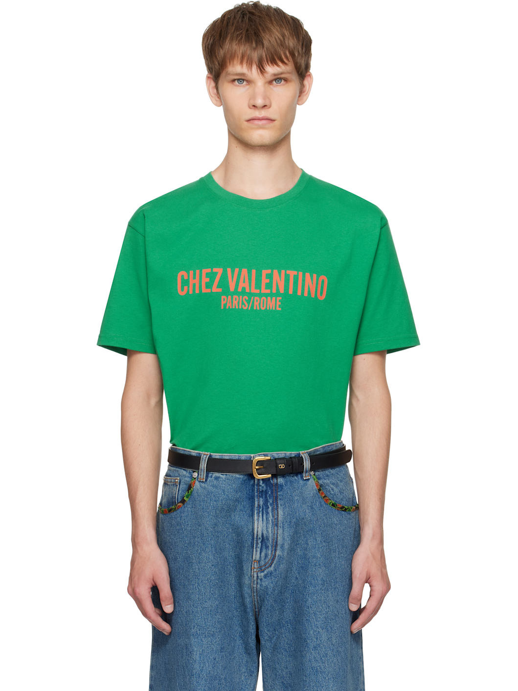 Green 'Chez Valentino' Print T-shirt
