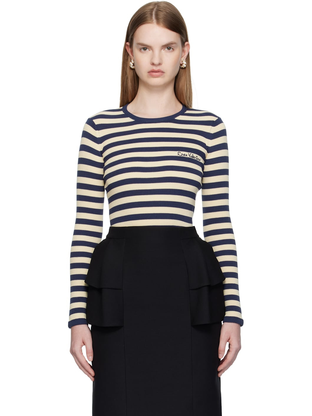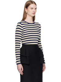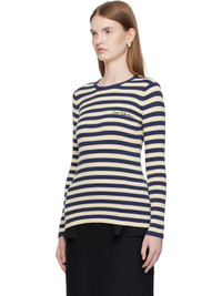 Embroidered striped cotton sweater Navy
