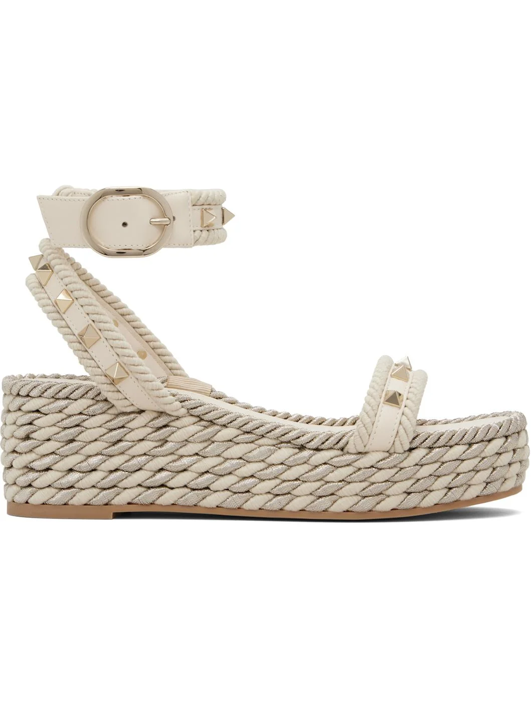 Buffed leather platform sandals. · Open square toe · Strap with pyramid studs at vamp · Pin-buckle ankle strap with pyramid studs · Logo stamp at leather footbed · Braided cord-covered platform midsole · Treaded rubber sole · Platform: H2.5" Supplier color: Light ivory Upper: leather, textile. Sole: rubber. Made in Spain 252807F124021