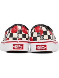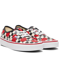 Low-top canvas sneakers. · Check, polka dot, and logo pattern throughout · Lace-up closure · Logo flag at outer side · Rubberized logo patch at heel · Canvas lining · Treaded rubber sole · Contrast stitching in white Part of the Valentino Garavani x Vans collaboration. Supplier color: Butter/Black/Rouge Pur Upper: textile. Sole: rubber. Made in Viet Nam 252807M237015