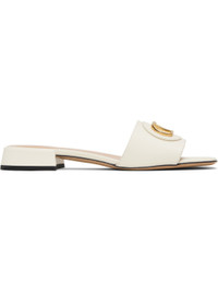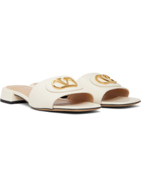 VLogo embellished leather slides Ivory