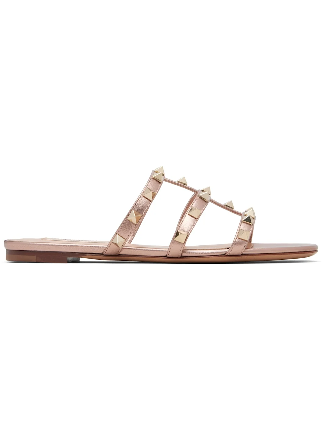 Laminated nappa sheepskin slip-on sandals. · Pyramid studs throughout · Open toe · Logo patch at footbed · Calfskin sole Supplier color: Rose cannelle Upper: sheepskin. Sole: calfskin. Made in Italy 261807F124017