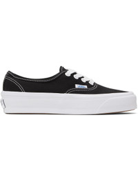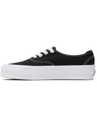 Low-top canvas sneakers in black. · Lace-up closure · Logo flag at outer side · Rubberized logo patch at heel · Removable padded Sola ADC foam footbed · Textured rubber midsole · Treaded rubber sole · Contrast stitching in white Supplier color: LX black/White Upper: textile. Sole: rubber. Made in Philippines 251739F128053