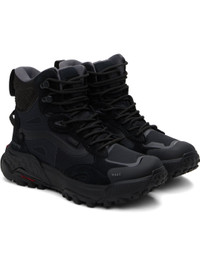 Ankle-high GORE-TEX® mesh, ripstop, and suede boots in black. · Waterproof · Rubber cap toe · Lace-up closure · Logo patch at padded tongue · Padded collar · Logo flag at outer side · Signature Sidestripe™ at sides · Text printed at inner side · Pull-loops at heel · UltraCush™ footbed · Jersey and mesh lining · Treaded rubber sole Supplier color: Black Upper: textile, leather. Sole: rubber. Made in Cambodia 251739M255000