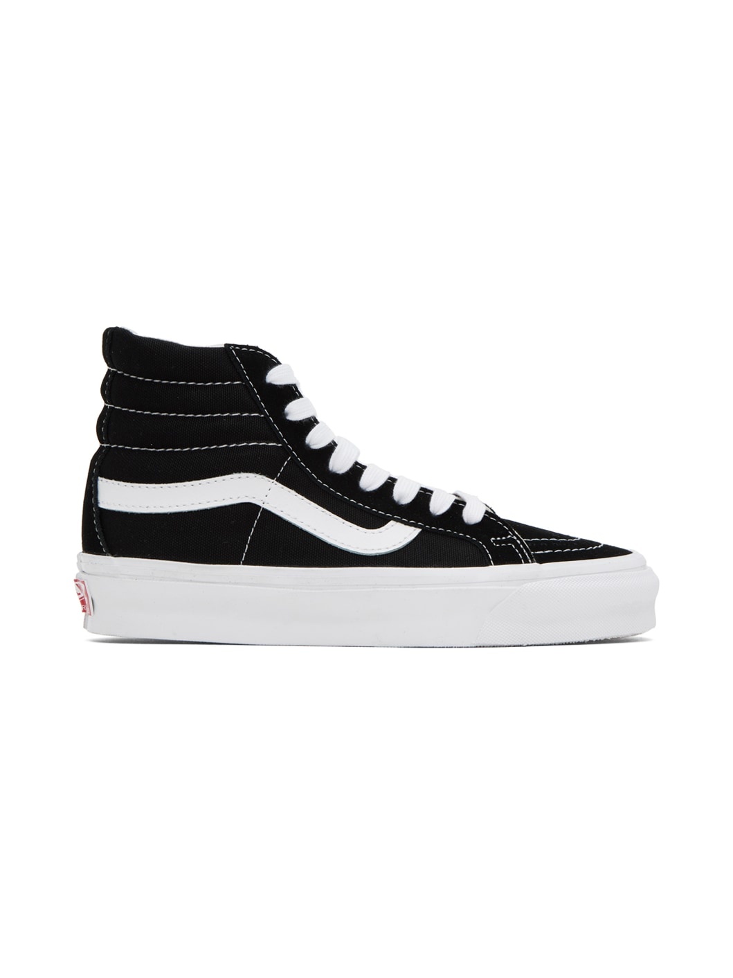 High-top paneled canvas and suede sneakers in black. Grained leather signature stripe in white at sides. · Lace-up closure · Padded quilted collar · Buffed leather lining · Rubberized logo patch at heel · Treaded rubber sole · Contrast stitching in white Supplier color: Black/Black/White Upper: textile, leather. Sole: rubber. Made in Philippines 232739M236005