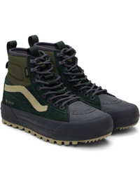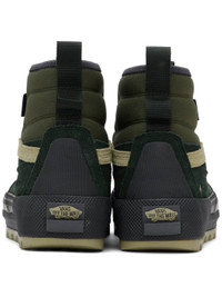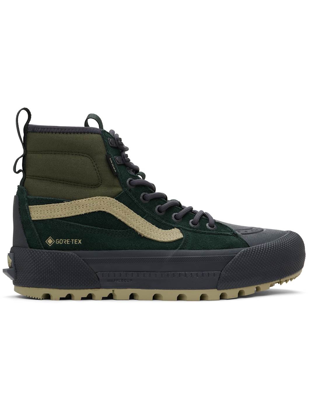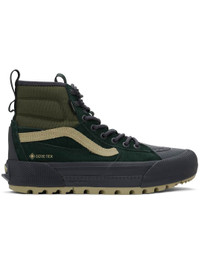 High-top canvas and suede sneakers in khaki. · GORE-TEX® Duratherm-insulated · Waterproof · Textured rubber cap toe · Lace-up closure · Logo patch at tongue · Pull-loop at tongue and heel collar · Logo flag at outer side · Signature Sidestripe™ at sides · UltraCush™ footbed · Fleece lining · Treaded rubber sole Supplier color: Scarab/Grape leaf Upper: textile, leather. Sole: rubber. Made in Viet Nam 251739M236003