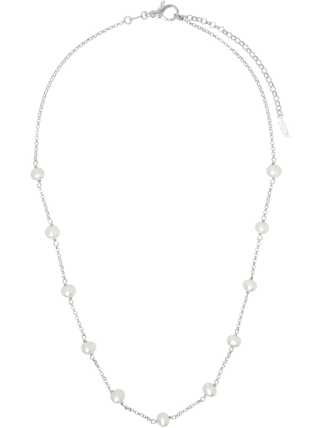 Handcrafted rolo chain necklace in 18k white gold vermeil. · Freshwater pearls throughout · Logo charm at adjustable lobster-clasp fastening · L23" Supplier color: White gold 18k gold vermeil, freshwater pearl. Made in Italy 252999M145005