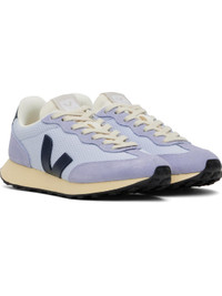 Low-top recycled polyester Alveomesh, suede, and buffed leather sneakers in blue. · Lace-up closure · Logo patch at padded tongue · Padded collar · Logo applique at sides · Text embossed at outer side · Logo printed at heel tab · Recycled polyester jersey lining · Treaded rubber sole Supplier color: Swan/Nautico Upper: textile, leather. Sole: rubber. Made in Brazil 251610F128023