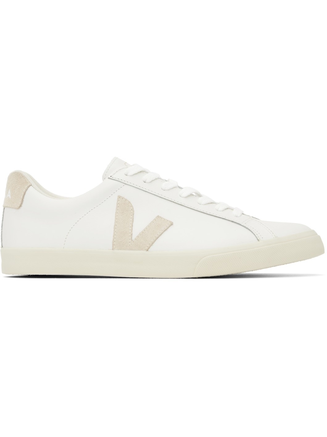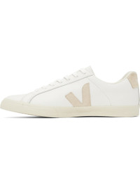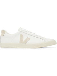 Low-top buffed leather sneakers in white. · Lace-up closure · Logo printed at tongue · Padded collar · Suede logo applique at sides · Logo printed at suede heel tab · Recycled polyester jersey lining · Treaded rubber sole Supplier color: White/Sable Upper: leather. Sole: rubber. Made in Brazil 251610M237007