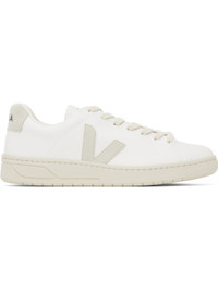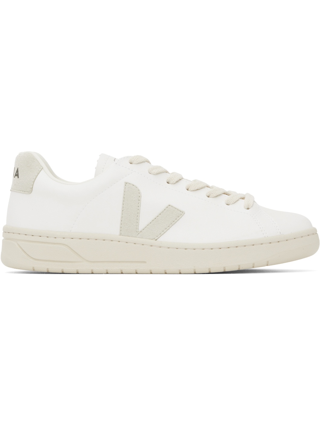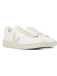 Low-top faux-suede and coated organic cotton faux-leather sneakers in white. · Lace-up closure · Logo printed at padded tongue · Padded collar · Logo applique at sides · Logo printed at heel tab · Recycled polyester jersey lining · Treaded rubber sole Supplier color: White/Natural Upper: textile, synthetic. Sole: rubber. Made in Brazil 251610M237024