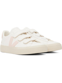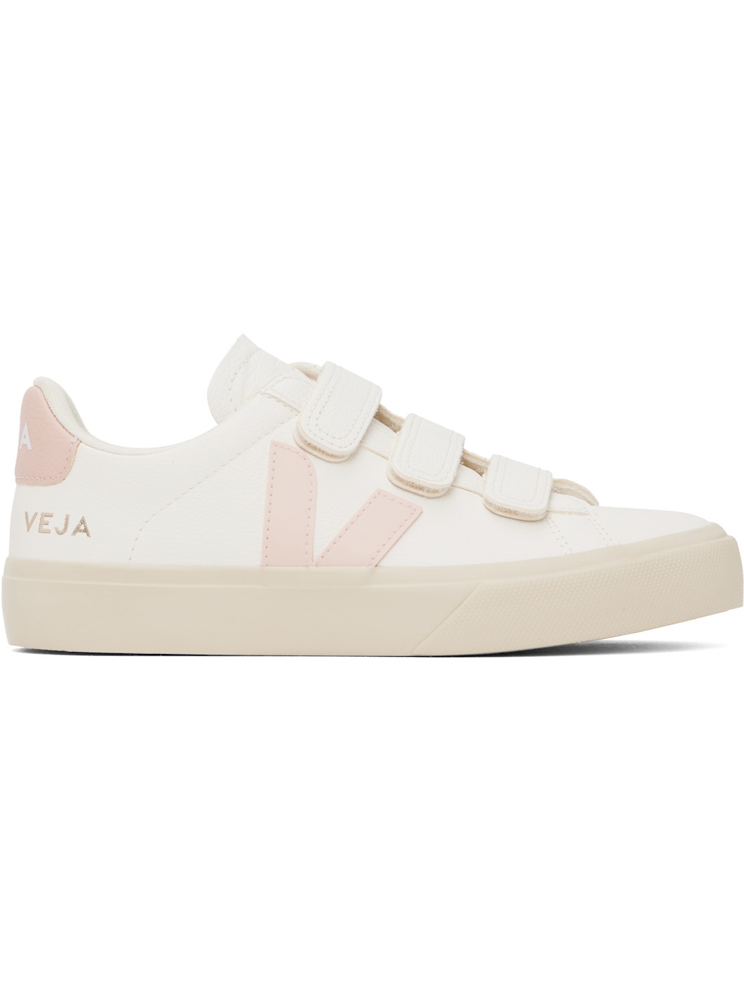 Low-top ChromeFree grained leather sneakers in white. · Velcro straps at vamp · Logo embossed at padded tongue · Padded collar · Rubberized logo applique at sides · Logo stamp at outer side · Logo printed at heel tab · Recycled polyester jersey lining · Treaded rubber sole Supplier color: Extra-white/Petale Upper: leather. Sole: rubber. Made in Brazil 251610F128024