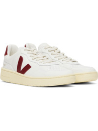Low-top grained organic leather sneakers in white. · Perforations at toe · Lace-up closure · Logo printed at padded tongue · Padded collar · Logo applique at sides · Text printed at outer side · Logo printed at heel tab · Recycled polyester jersey lining · Treaded rubber sole Supplier color: Extra-white/Marsala Upper: organic leather. Sole: rubber. Made in Brazil 251610M237042