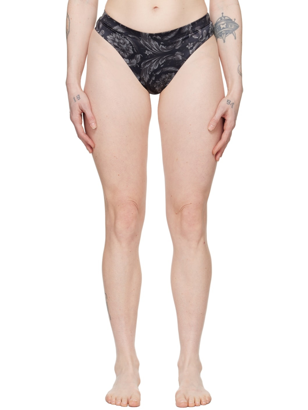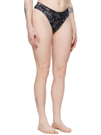Stretch polyester satin briefs. Graphic pattern printed throughout. · Elasticized waistband · Full mesh lining Supplier color: Black Body: 88% polyester, 12% elastane. Trim: 94% cotton, 6% elastane. Lining: 82% nylon, 18% elastane. Made in Italy 241653F081004
