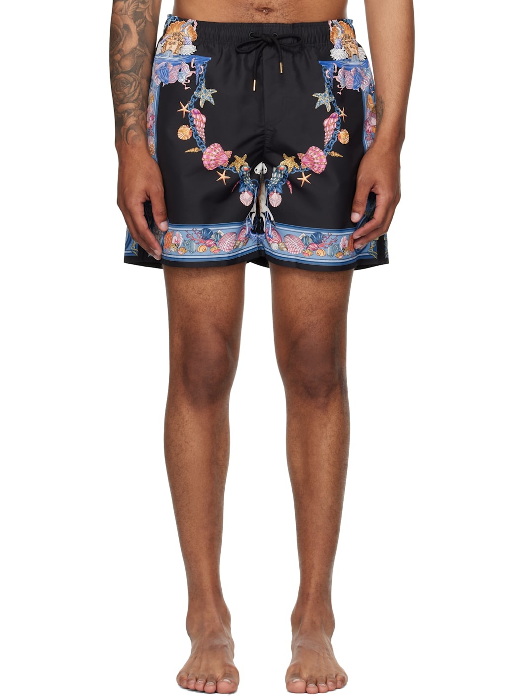 Taffeta swim shorts. · Logo graphic pattern printed throughout · Drawstring at elasticized waistband · Three-pocket styling · Mock fly · Mesh brief-style lining · Logo-engraved gold-tone hardware Part of the La Vacanza collection. Supplier color: Print Body: 100% polyester. Lining 1: 80% polyamide, 20% elastane. Lining 2: 100% polyester. Made in Italy 252404M208001