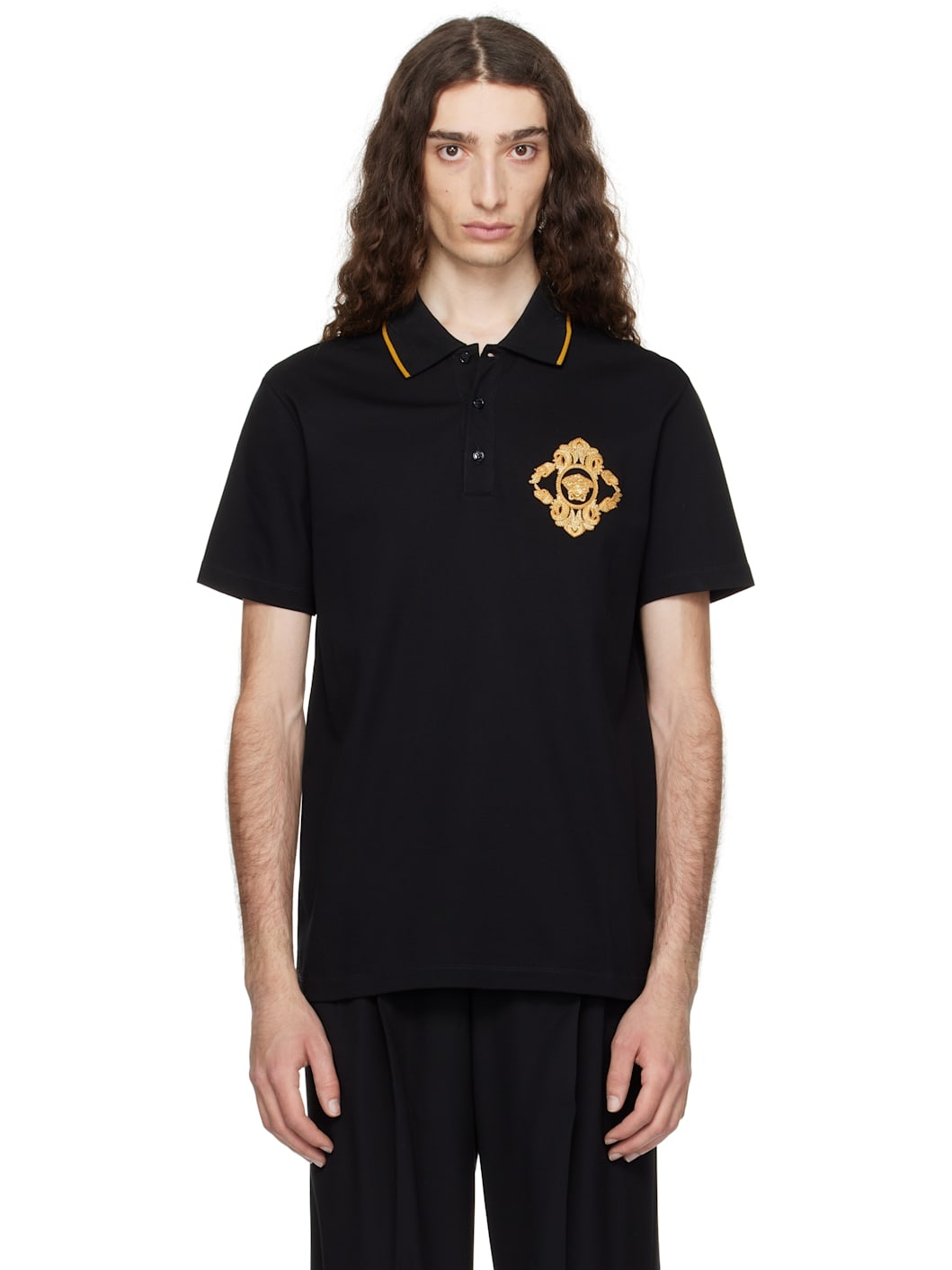 Black Embroidered Architectural Baroque Polo