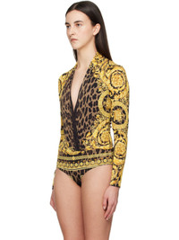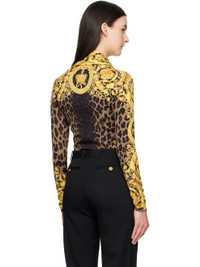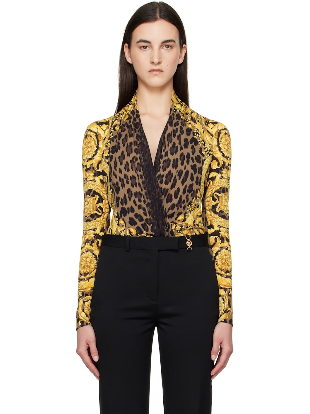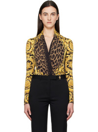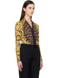 Black & Gold Wild Barocco Silk Draped Bodysuit