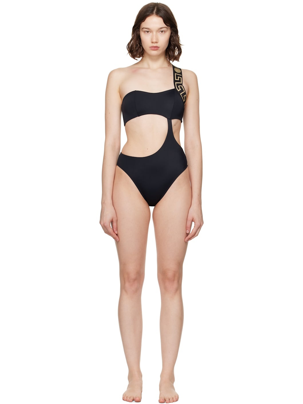 Black Greca Border One-Piece Swimsuit