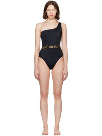 Stretch nylon jersey one-piece swimsuit. · Single-shoulder construction · Rib-knit waistband with logo pattern · Fully lined · Zip travel pouch included Part of the La Vacanza collection. Supplier color: Black 78% nylon, 22% elastane. Made in Italy 252404F103003