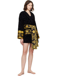 Black 'I Heart Baroque' Short Bathrobe