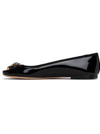 Patent calfskin ballerina flats. · Bow with Medusa hardware at vamp · Grosgrain trim at collar · Buffed lambskin lining · Rubber heel · Leather sole Supplier color: Black/Gold Upper: calfskin. Sole: leather, rubber. Made in Italy 252404F118001