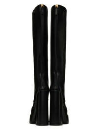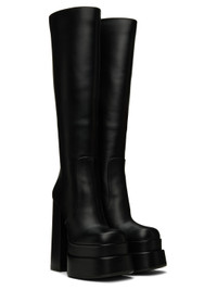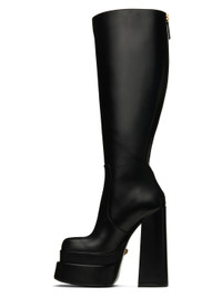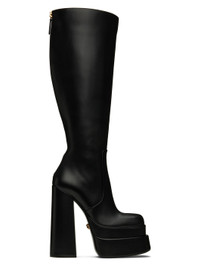 Knee-high buffed calfskin boots in black. · Square toe · Zip closure at heel · Covered block heel with rubber injection · Medusa hardware at leather sole · Platform: H2.25 in · Heel: H6 in Supplier color: Black Calfskin. Made in Italy 231404F115001