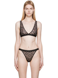 Semi-sheer stretch nylon tulle bra. · Scalloped edges and logo pattern knit throughout · Hook-eye fastening at logo-woven elasticized trim Supplier color: Black Body: 93% nylon, 7% elastane. Trim: 78% polyester, 11% elastane. Made in Italy 222653F073030