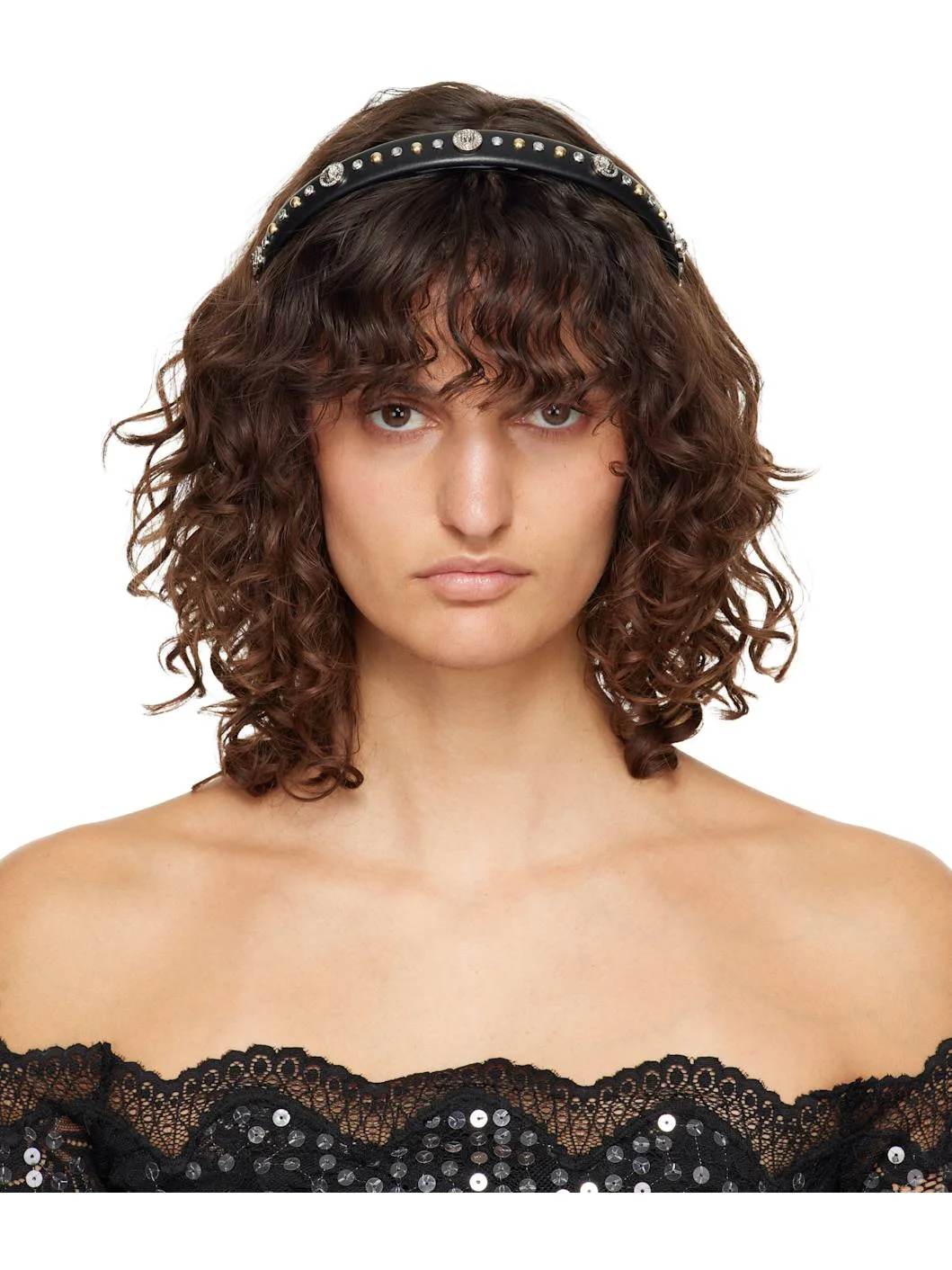 Buffed lambskin headband. · Studs and logo hardware throughout · Grosgrain trim at interior · D6" Supplier color: Black Lambskin. Made in Italy 261404F018003