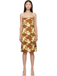 Brown & Yellow Wild Roses Strapless Midi Dress
