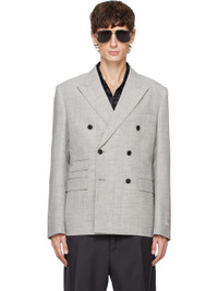 Gray Wool-Blend Double-Breasted Blazer