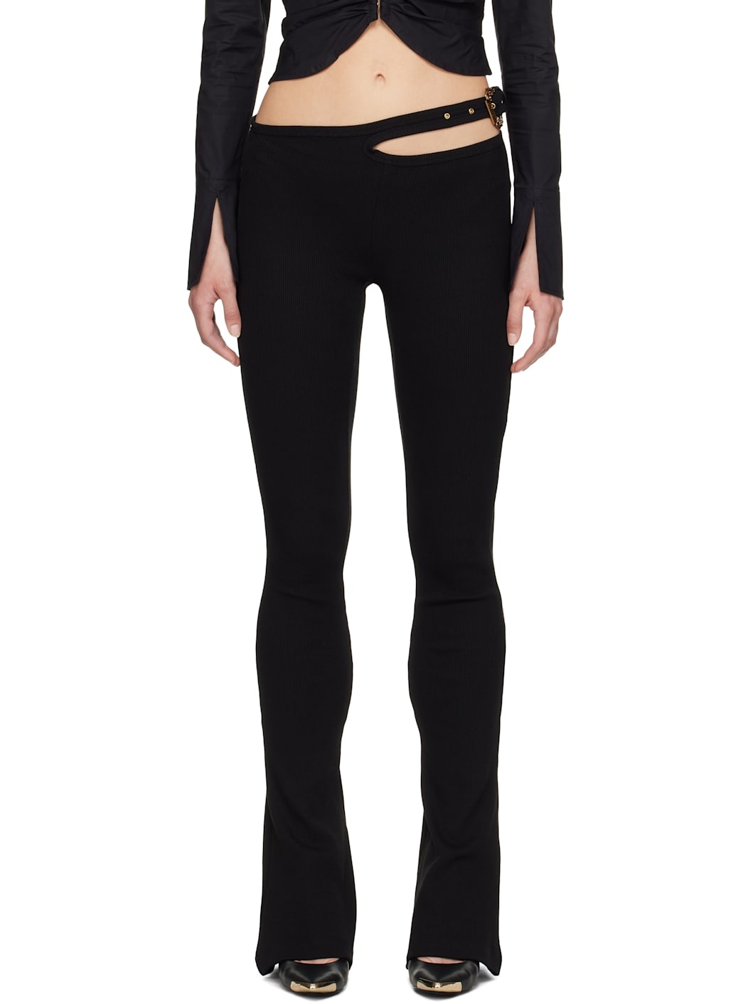 Stretch cotton ribbed jersey leggings. · Adjustable pin-buckle strap and cutout at waistband · Logo-engraved antiqued gold-tone hardware Supplier color: Black 98% cotton, 2% elastane. Made in Italy 251202F086000